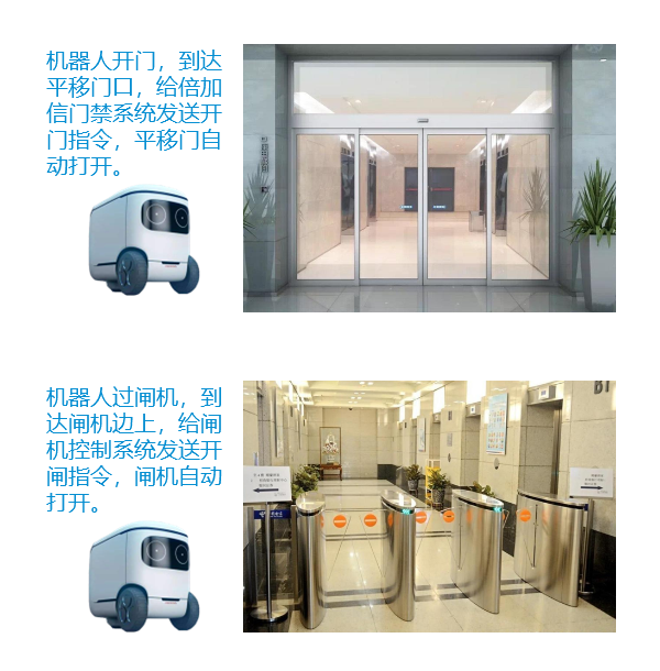 機器人乘梯:機器人可以通過與梯控系統通信,機器人在電梯上自由通行。