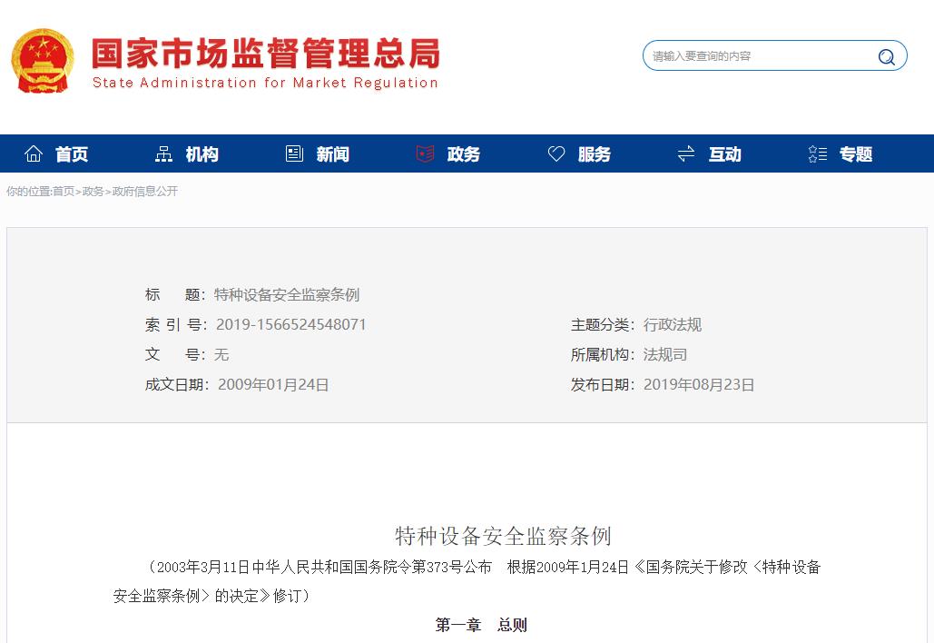 《特種設備安全監察條例》2019年08月23日 國家市場監督管理總局