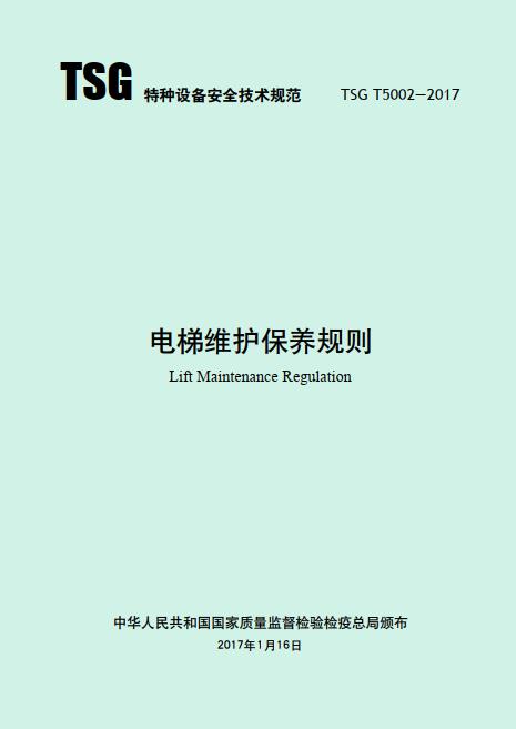 《電梯維護保養規則 TSG T5002—2017》國家質量監督檢驗檢疫總局