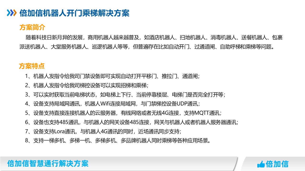 倍加信科技【機器人乘梯系統】近期升級功能如下: